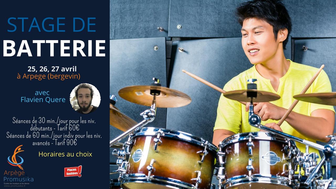 Vous souhaitez vous initier à la batterie ? ce stage est pour vous ! Jeudi 25, vendredi 26 et samedi 27 avril 2019 Horaires à convenir avec l'organisateur Lieu : Promusika - Raizet, Abymes. 30 min : 60€ 60 min: 90€