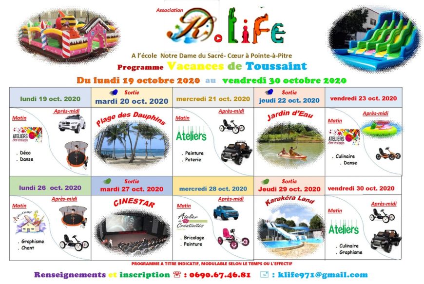 Les vacances de la Toussaint arrivent très bientôt ! et le programme artistique et créatif est prêt !!! Renseignements et inscription : 0690 944...